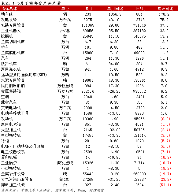分行业来看,制造业不同行业表现差异较大。符合政策导向的诸如动车组、发电设备、工业机器人等行业产量增速较高,饲料加工机械、大气污染防治设备、金属冶炼设备等产量同比下降幅度较大。
