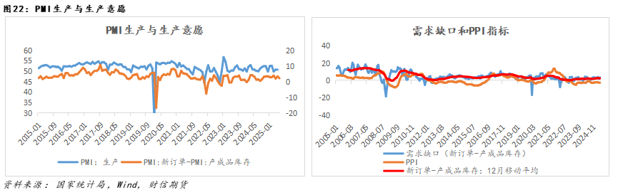 供需缺口波动较小,生产意愿回升下对需求提出更高要求。以PMI新订单和PMI产成品库存的差值来刻画需求端缺口变化情况,波动整体较小。PMI生产意愿略有上升,短期PPI或维持承压运行。