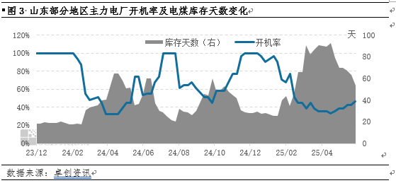 电力行业方面,2025年上半年,国内电厂长协煤发运比较充足,电厂日耗低,煤炭库存始终居高不下,电厂在高库存压制下,以消耗库存为主,新增采购需求有限,且有采购需求的电厂采购时会优先兑现长协煤合同,对市场煤采购量非常有限,据卓创资讯统计数据显示,2025年上半年,山东地区部分主力电厂电煤库存平均可用天数较去年同期高25天左右,而同期电厂开机率同比则下滑10个百分点左右。