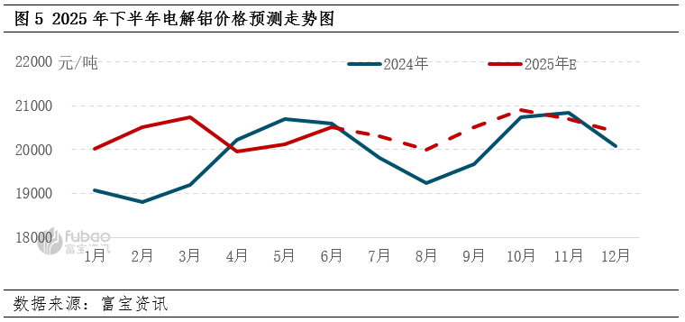 下半年,电解铝市场或偏弱震荡后随着旺季到来走强,临近年底价格季节性回落,总体整体维持高区间震荡,运行区间或扩大至19700-21500元/吨之间,均价20400元/吨,高于上半年。下半年影响电解铝价格走势的主要驱动或将落脚在需求表现及库存变化。需求端在国内投资和消费仍有增量预期的支撑下,一定程度抵消出口端变数。下半年铝水就地转化率预计将高于上半年,新产能释放偏向四季度,供应增量有限,库存低位或将成为常态。若在下半年市场期待的贸易战进一步缓和、美联储降息、国内增量措施利好刺激之下,铝价或仍存在突破年内高位的预期。