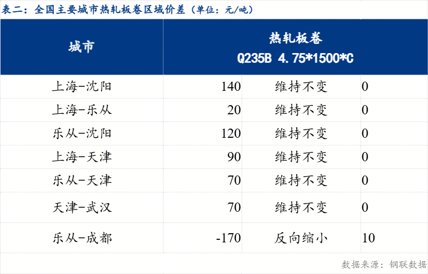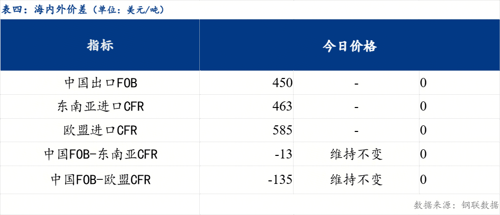 从区域价差来看,华东与东北价差140元/吨,较上一交易日维持不变;华东与华南价差20元/吨,较上一交易日维持不变;华南与华北价差70元/吨,较上一交易日维持不变。
