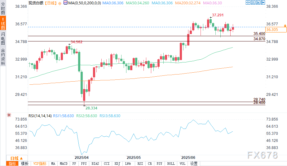 汇通财经APP讯——周二(7月1日),现货白银价格小幅走高,守住36.30美元关键位,交易员正评估近期36.84美元的小幅高点能否被突破。