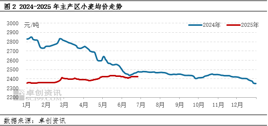 供应方面,7-9月份处于新小麦集中售粮期,市场粮源充沛,供应面存压力,对小麦价格影响偏利空。其中,7月份高温多雨天气影响下,部分水分偏高粮源存在阶段性集中出货可能;9月中下旬新季玉米上市前,小麦可能存在腾仓回笼资金压力。