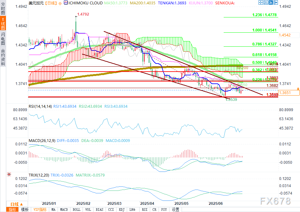 受美国数据以及鲍威尔在葡萄牙欧洲央行论坛上发表的谨慎言论影响,美元/加元从略低于1.3600的两周低点反弹,并在周三欧洲交易时段稳定在1.3640上方,这得益于市场温和的风险偏好。