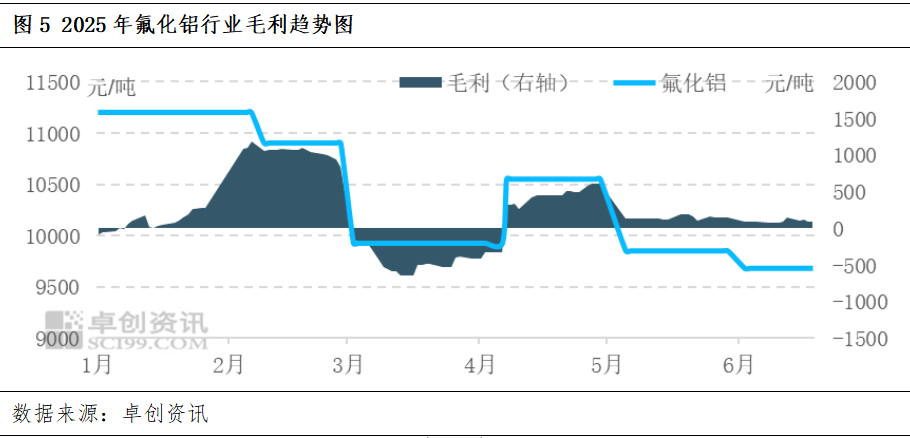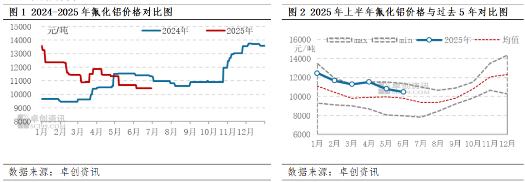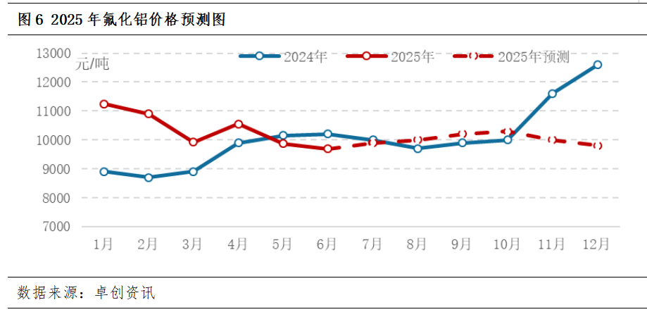 上半年氟化铝价格重心呈震荡走低趋势,行业产能继续扩增下,产量同环比均呈增加趋势,下游需求相对平稳,且控价能力较强,造成氟化铝价格不断走低,行业毛利水平缩水;下半年预计供应量仍呈增加趋势,供大于求现状下,预计氟化铝价格呈低位震荡趋势。