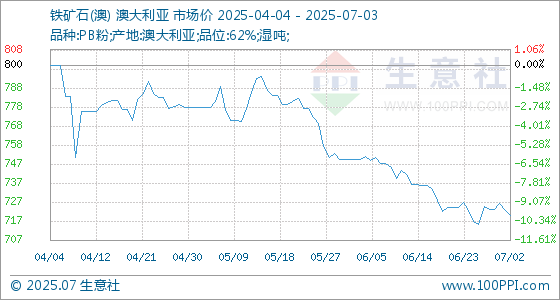 7月3日生意社铁矿石(澳)基准价为720.22元/吨