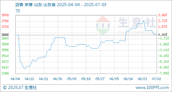 7月3日,生意社沥青基准价为3670.00元/吨,与本月初(3673.33元/吨)相比,下降了0.09%。