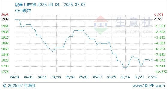 7月3日,生意社尿素基准价为1825.00元/吨,与本月初(1823.00元/吨)相比,上涨了0.11%。