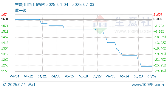 7月3日,生意社焦炭基准价为1200.00元/吨,与本月初持平。