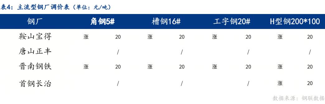 2、成交量为20家型钢厂当日成交,其中包括工字钢6家、角钢7家、槽钢7家。