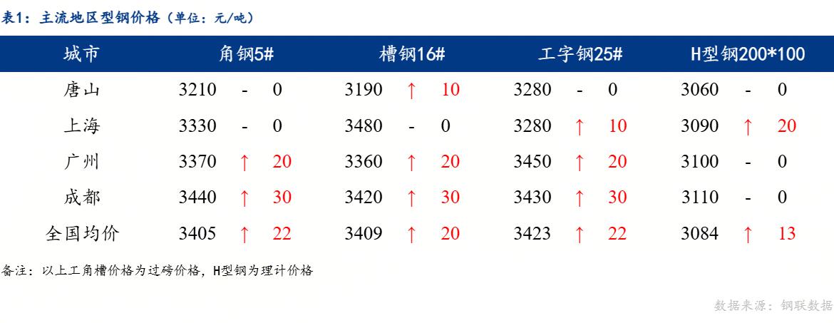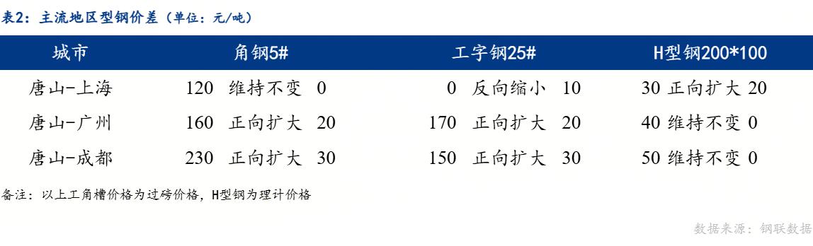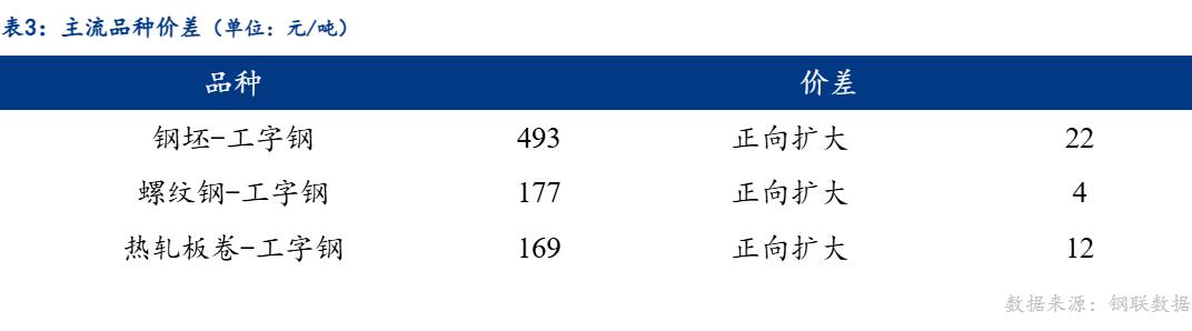 从品种价差来看,工字钢与钢坯、螺纹钢、热轧板卷价差正向扩大。