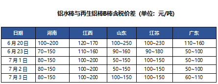 江西:江西市场B棒含税价20750元/吨,不含税价19300元/吨。市场报价趋同,部分品牌报价跟盘上调,下游比价逢低采买为主,弱需加上铝价相对高位,市场整体成交一般。