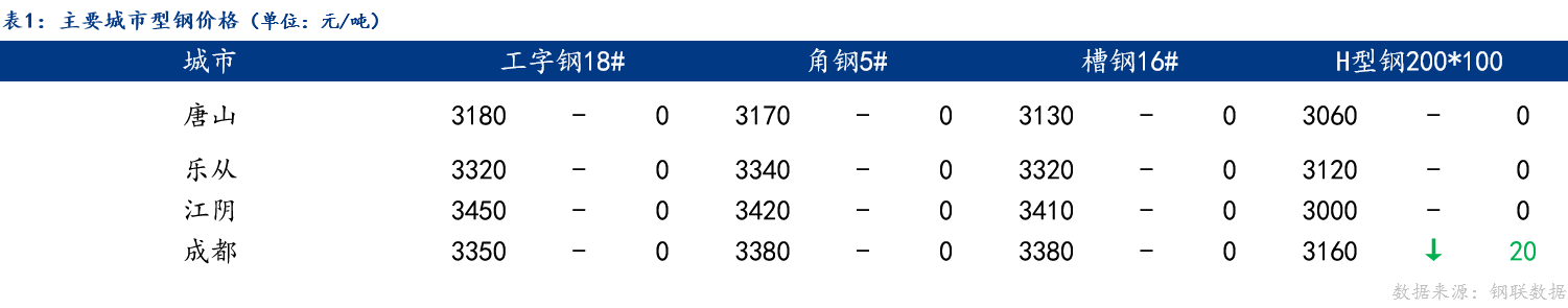 今日型钢价格稳中趋弱运行,成都H型钢价格下跌20元/吨。