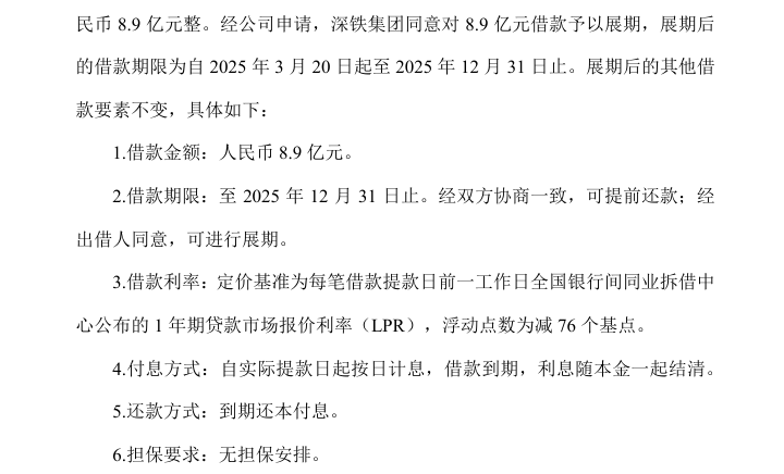根据公告,深铁集团有权要求公司就此次借款提供担保措施,公司应根据深铁集团要求提供担保,相关担保措施在履行完毕公司按照法律法规与上市规则应当履行的所有决议程序后生效。