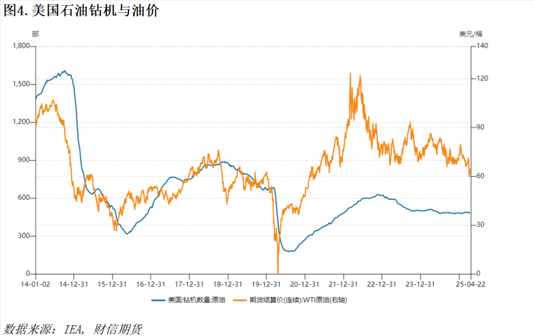 当前美国主产区Permian产区尚未开发的油田开采成本接近60美元,若油价因增产预期下跌幅度较大,页岩油企业增产的意愿将会下降。如EIA5月发布的《短期能源展望》因将2025年布伦特原油均价从2024年的81美元下调为66美元/桶,一并将美国产量增速从年初月预测的40万桶/日下调到了20万桶/日。