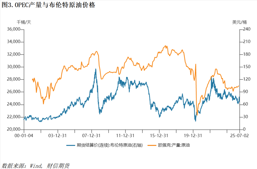 但从历史上大部分时间来看,油价与OPEC+产量呈现正相关性。在衰退期,即使OPEC+减产也难以逆转油价下行趋势;在经济增长期,OPEC+增产伴随原油消费扩张,OPEC+增产被市场解读为“供应过剩即将结束”的信号,反而刺激投机性买盘推高价格。