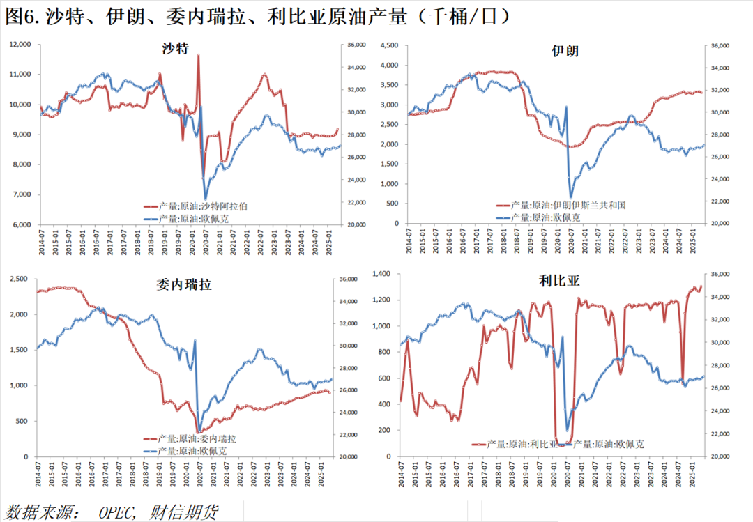 供应端,OPEC+明确连续三次大幅增产,受限于剩余产能不足,实际增产幅度或低于预期,冲击相对有限。美国产量虽达1340万桶/日高位,受成本及投资制约增量放缓,加拿大、巴西等非OPEC+国家贡献部分增量。地缘上伊以矛盾、俄乌冲突持续扰动供应,若局势升级仍可能再次放大断供风险,成为支撑油价的关键矛盾。