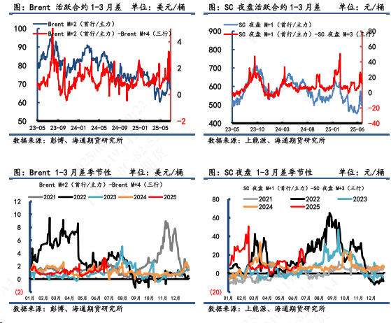 ③ 短期来看,欧佩克+增产及展望全年需求疲弱下供应过剩压力仍然是油价全年运行的主脉络。在伊以地缘冲突逐渐消退后,市场逐渐回归基本面交易。油价当前位置下有支撑上有阻力,短期内预计将继续维持小区间震荡修复动作,机会选择上倾向于建议继续把握反弹高点做空的机会,谨慎参与。当下对内外价差套利来看,前期多SC空Brent的操作可逐渐止盈。