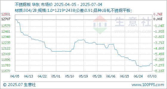 7月4日生意社不锈钢板基准价为11821.43元/吨