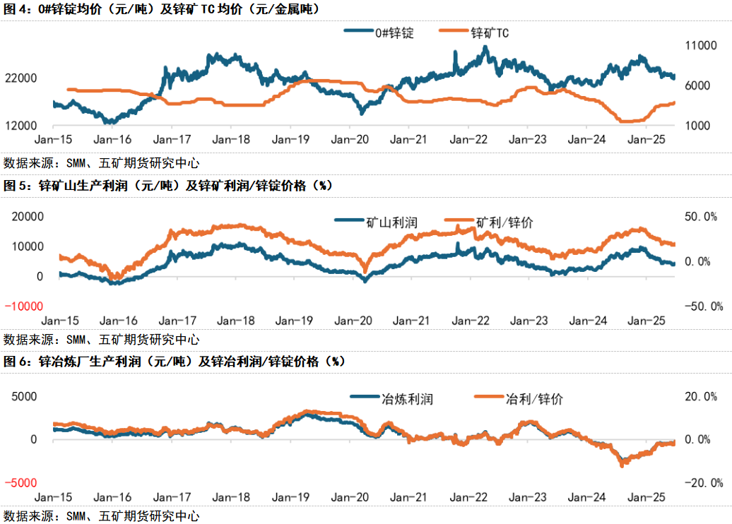 这一阶段中,锌精矿 TC 涨速放缓或出现缓跌,冶炼利润从滞涨转为下跌,矿冶利润同步下行;且在价格横盘期间,冶炼开工率相对较高。