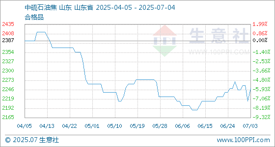 7月4日,生意社石油焦基准价为2250.00元/吨,与本月初(2257.50元/吨)相比,下降了0.33%。