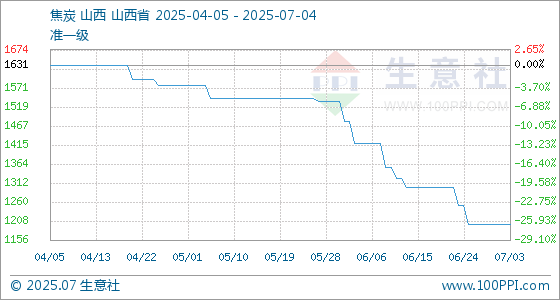 7月4日,生意社焦炭基准价为1200.00元/吨,与本月初持平。