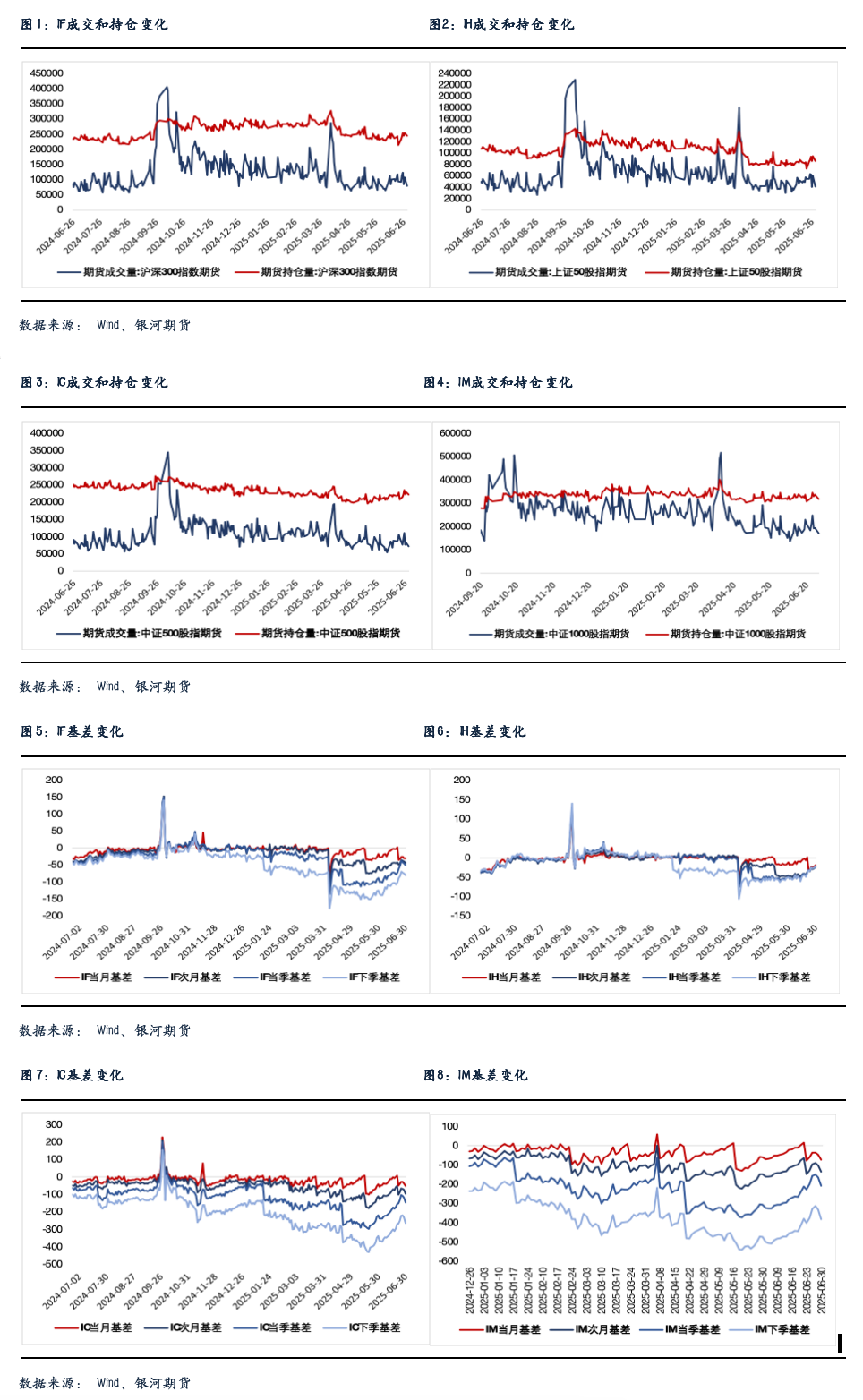 股指期货全线上涨,至收盘,主力合约IH2509涨0.19%,IF2509涨0.67%,IC2509涨0.35%,IM2509涨0.47%。IC和IM贴水再度加大,IF和IH基差稳定。IM、IC和IH成交分别下降1.7%、0.8%和8.3%,IF成交增加3.9%;IM和IC持仓分别增加0.8%和0.7%,IF和IH持仓分别下降0.2%和2.3%。
