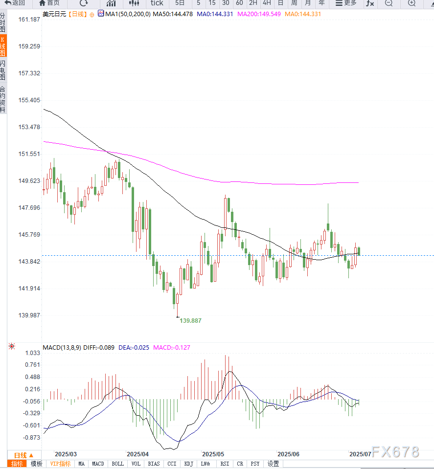 虽然美国就业市场依然稳健,但通胀疲弱、财政赤字扩大及贸易不确定性共同构成对美元的不利环境。反观日本经济数据显示出复苏迹象,加之BoJ政策重心转向正常化,日元有望在中期内持续吸引资金流入。若USD/JPY失守144.00,或将迎来进一步修正行情。