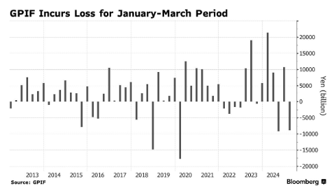受美元贬值拖累海外证券估值及国内资产下跌影响,日本政府养老投资基金(GPIF)遭遇季度亏损。