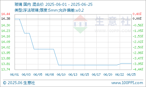 需求方面:据生意社商品分析系统显示,6月25日玻璃价格平稳,市场均价维持在13.82元/平方米不变。玻璃装置变动不大,市场货源供应充足,下游采买积极性不高,少量采买低价为主,玻璃市场去库一般,玻璃价格弱稳运行。