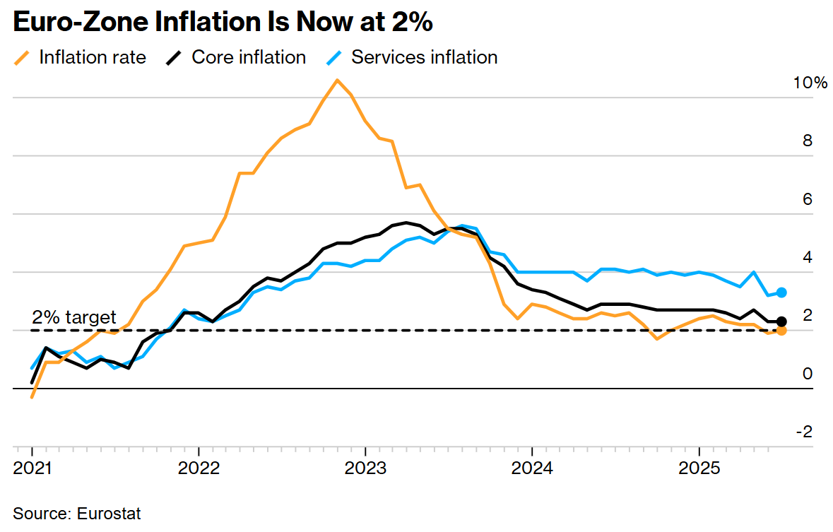 在法国,自去年8月以来通胀率一直低于2%,5月份降至0.7%,为四年多来的最低水平。