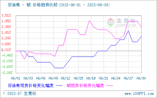 据生意社商品分析系统显示,6月份地炼石油焦行情震荡上涨,国内主要地炼厂家石油焦产品主流均价6月30日为2257.50元/吨,6月1日为2225.00元/吨,月涨幅为1.46%。