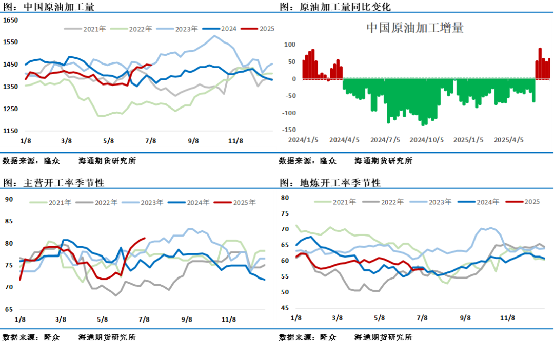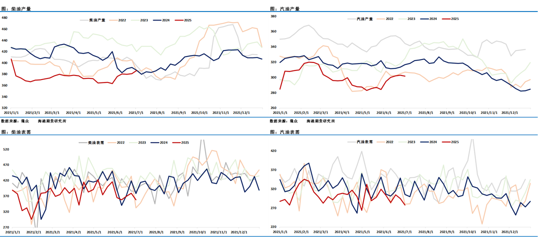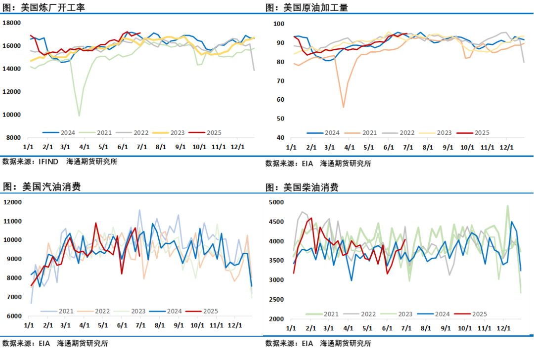 中国原油加工量连续5周高于去年同期,归功于主营炼厂开工率继续刷新5年同期高位,值得一提的是虽然原油加工量提升明显,但增量相当一部分是去了化工链条,数据显示今年中国汽柴油消费明显低于去年同期,中国原油实际需求增量仍非常有限。近期成品油市场的亮点是欧美柴油表现强劲,美国柴油消费反弹及库存低位均支撑了柴油价格的走强。尽管消费旺季阶段整体表现尚可,但已经很难匹配供应端后续的增产压力。