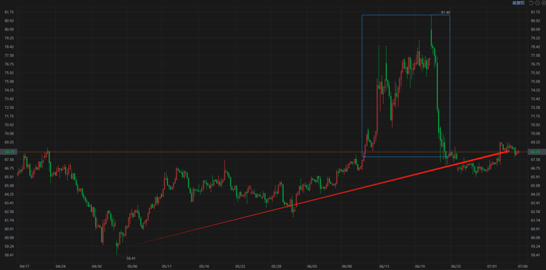从5月初到现在,剔除地缘带来的半个月剧烈波动,在过去的2个月油价的时间油价重心基本是维持着震荡反弹走势。这其中包括其中欧佩克+2次提速增产之后油价表现的越来越抗跌,所以市场信心似乎越来越足,越来越觉得油价跌不下去。