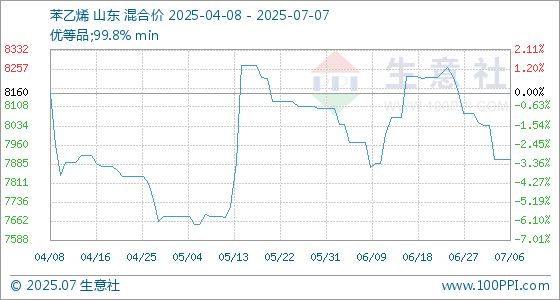 7月7日生意社苯乙烯基准价为7904.00元/吨