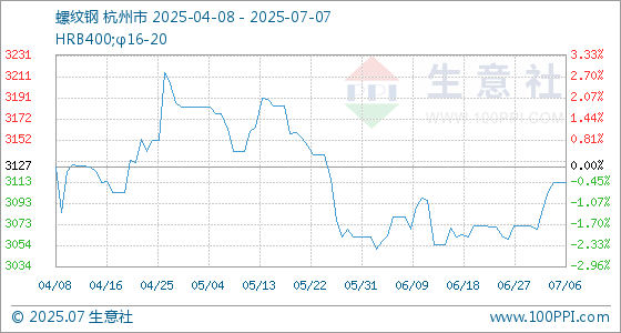 7月7日生意社螺纹钢基准价为3113.00元/吨