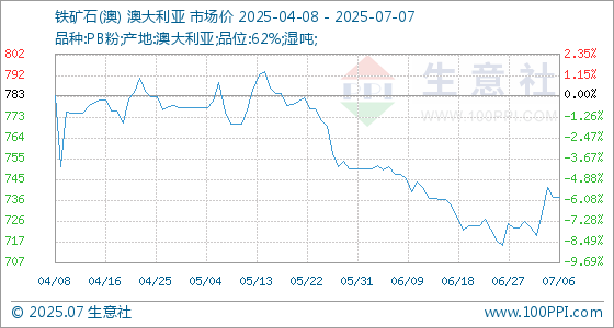 7月7日生意社铁矿石(澳)基准价为737.33元/吨