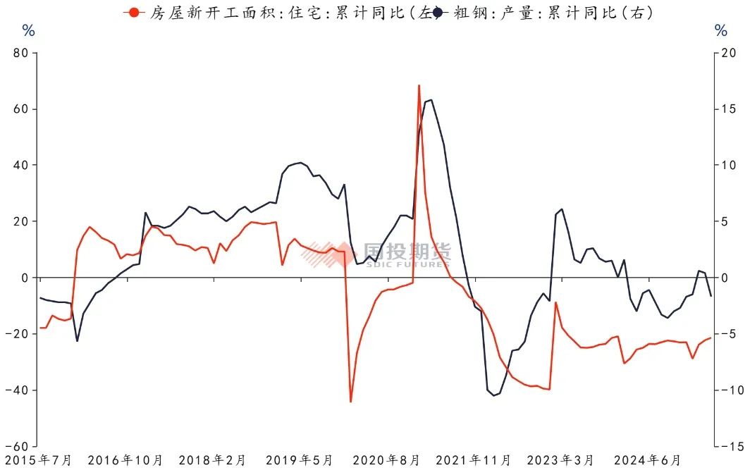 如上所述,在房地产处于下行周期中,当前煤焦钢矿和建材板块基本面偏弱,价格整体仍在下行趋势之中。不过,当价格跌到一定程度时,市场便寄希望于政策能在供应端有所表现,比如之前各种关于减产的小作文,只是这类消息在今年对盘面的提振都十分有限。但是,前期超跌的品种最近在“反内卷”消息刺激下出现上涨,比如多晶硅、玻璃等品种。从盘面看,“反内卷”的确给市场带来提振,这可能有两方面原因:一方面,价格持续下跌过程中部分品种始终维持低库存,市场一旦有重大消息逆转预期,容易加大价格弹性;另一方面,持续下跌导致盘面做空力量太过拥挤,盘面快速反弹时主力集中平仓。但是,“反内卷”对于多数品种的供需可能需要更长远的时间去观察。
