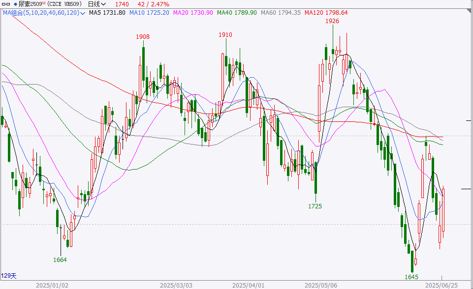 受出口港检消息松动,印度发布招标等利多因素影响,尿素价格持续上涨。主力合约收在1740元/吨,涨幅2.47%。