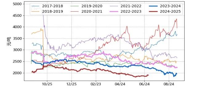 7月4日,9月螺纹钢铁矿石差为1900.0小于过去2年10%分位。过去5年最小值为1815.2,过去5年中位数为2507.0。过去1年最小值为1815.2,过去1年中位数为2099.2。2024年同期价差为2232.8,2023年同期价差为2454.4。