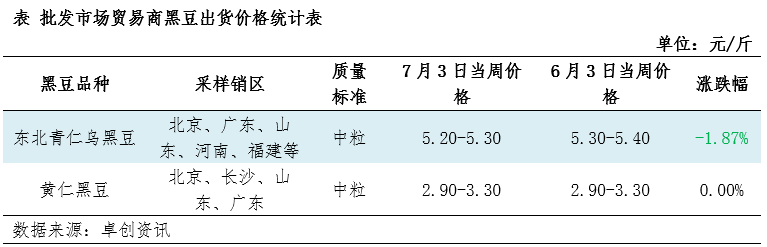 7月青仁乌黑豆价格或部分稳定、局部偏弱