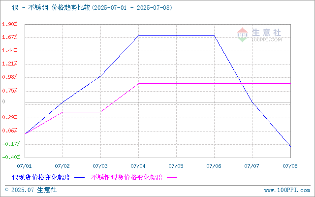价格反弹乏力:7月8日不锈钢基准价12,887.5元/吨(周涨0.88%),但钢厂减产预期下,对镍需求支撑有限。