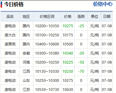 1、【市场】河北A回收商:废电动收货价9970元/吨,订了保价合同,所以采购价格也没下调,最近收货量一般;