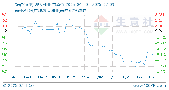 7月9日生意社铁矿石(澳)基准价为734.67元/吨