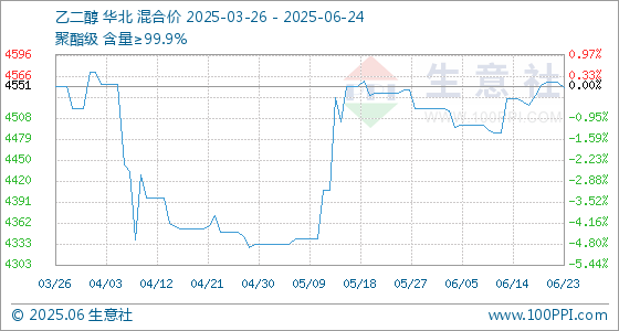 6月24日生意社乙二醇基准价为4550.00元/吨