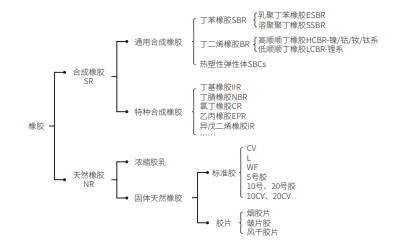合成橡胶按成品状态的不同可分为液体橡胶、固体橡胶、乳胶和粉末橡胶等;按照用途的不同,可分为通用合成橡胶与特种合成橡胶两大类。目前,丁二烯橡胶(BR)与丁苯橡胶(SBR)是应用最为广泛的两大合成橡胶品种。