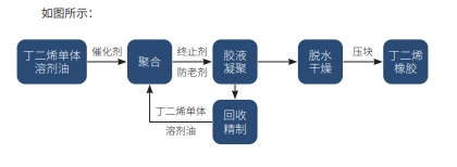 合成橡胶的生产流程大致可分为单体的合成和精制、聚合过程以及橡胶后处理三部分。