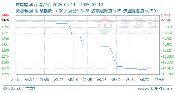 7月10日生意社炼焦煤基准价为1236.25元/吨