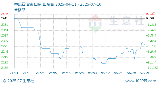 7月10日,生意社石油焦基准价为2280.00元/吨,与本月初(2257.50元/吨)相比,上涨了1.00%。