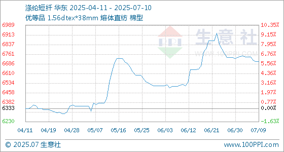 7月10日生意社涤纶短纤基准价为6702.71元/吨